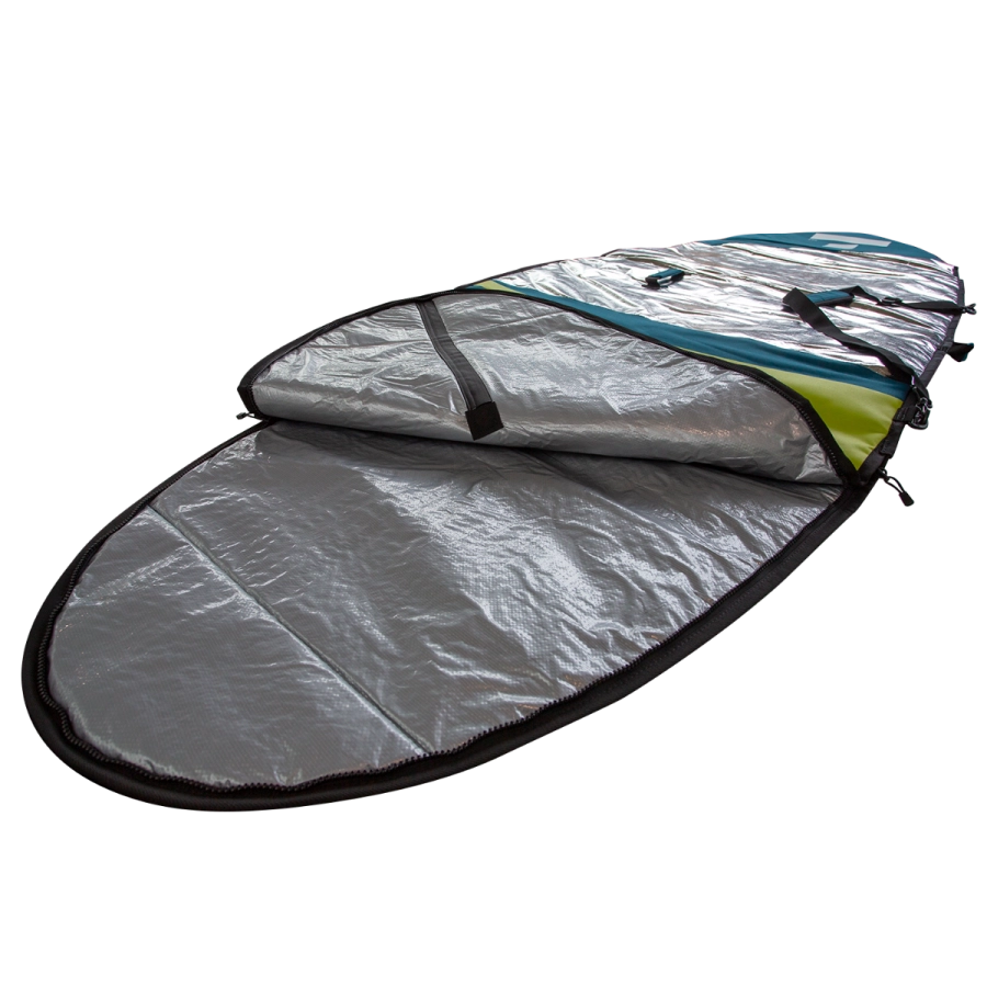 Ma grubość 5 mm i chroni deski przed drobnymi wgnieceniami i uszkodzeniami cieplnymi. Zaprojektowane tak, aby idealnie pasowały do naszych desek, nasze pokrowce są wykonane z niezwykle wytrzymałej tkaniny PolyPro i odblaskowego, odpornego na ciepło materiału. Posiadają wytrzymałe zamki błyskawiczne, wyściełany pasek na ramię i idealnie nadają się do podróży i przechowywania na desce.